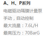 LMI電磁計量泵共有P,A(AA),B,C,E,H,J5等7個系列。用戶可根據(jù)流量、壓力、防爆等級、電源、自控等要求選用相應(yīng)系列計量泵。